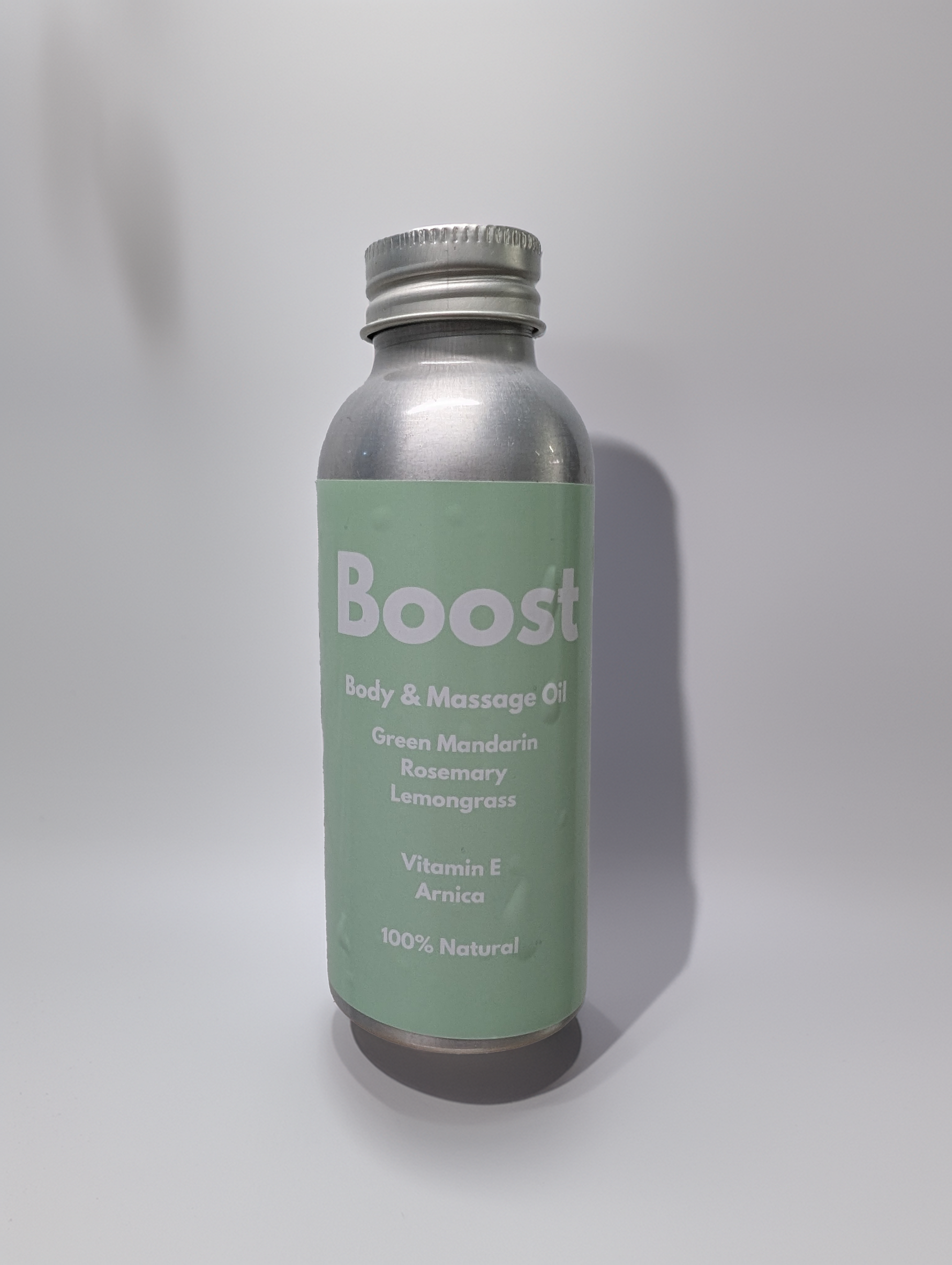 Boost body & massage oil contains a vibrant blend of essential oils and Arnica to energise the body and focus the mind. Boost will help to optimise and maintain healthy muscle tissue by stimulating the circulation; it is invigorating, light and refreshing and will promote a positive mental attitude. It is based in grapeseed and sunflower oils which are high in linoelic acid, an Omega 6 essential fatty acid and contains Vitamin E - a powerful anti-oxidant. They are nourishing to the skin, easily absorbed and do not leave a residue.