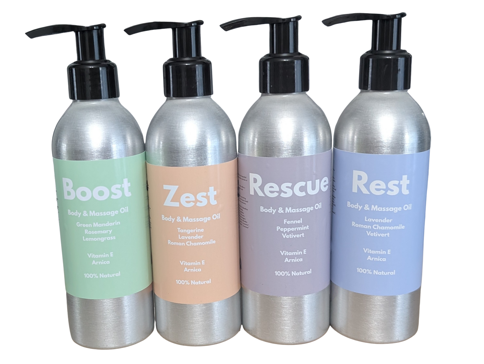 The complete professional collection of Pepperfit's naturally therapeutic Massage & Body Oils containing carefully chosen essential oils and arnica to ease aches and pains, energise, relax and condition.